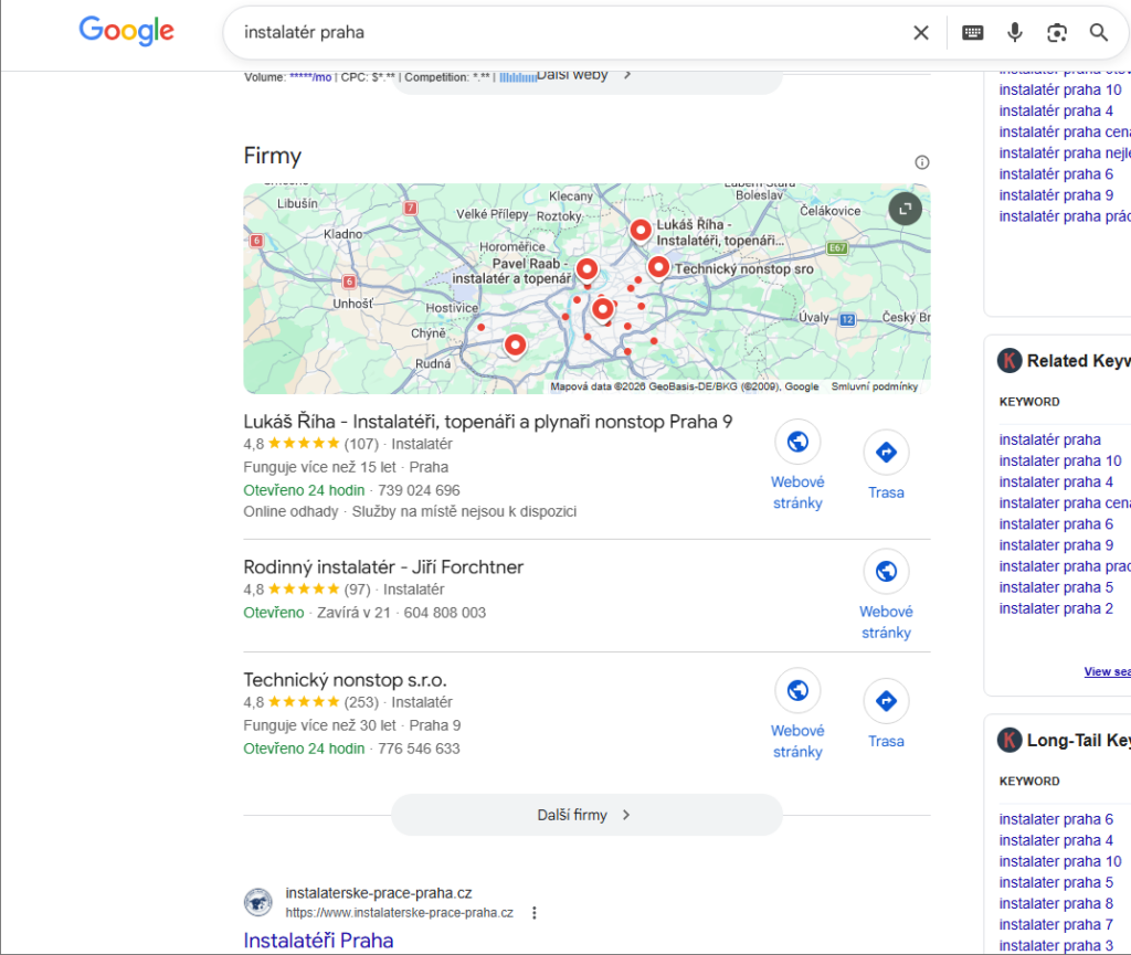 A co je zásadní: místní výsledky (mapový balíček) se neřadí jen podle webu. Google sám říká, že lokální výsledky jsou hlavně o relevanci, vzdálenosti a „prominenci“ (popularitě/důvěryhodnosti).
